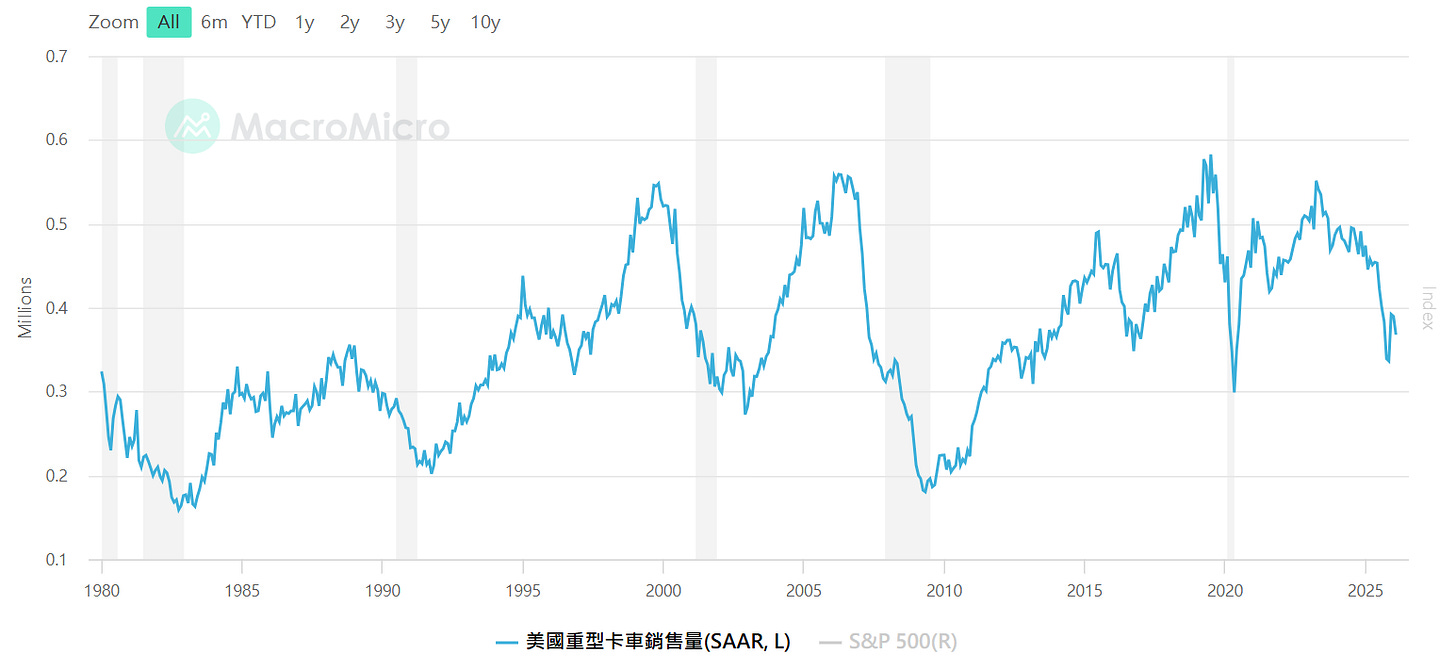 柯博文指數 (美國超過 6.35 公噸的卡車銷售量),資料來源 : MacroMicro財經M平方,智股網FB貼文連結