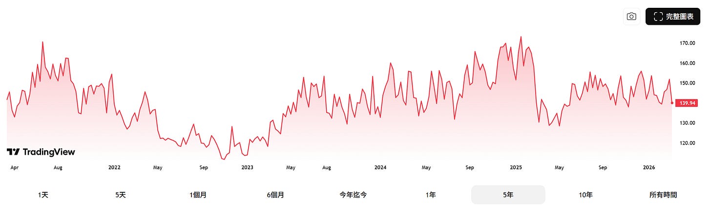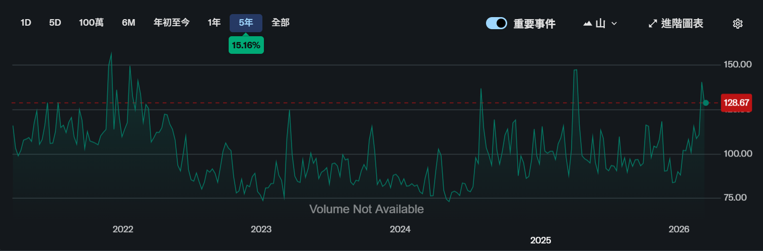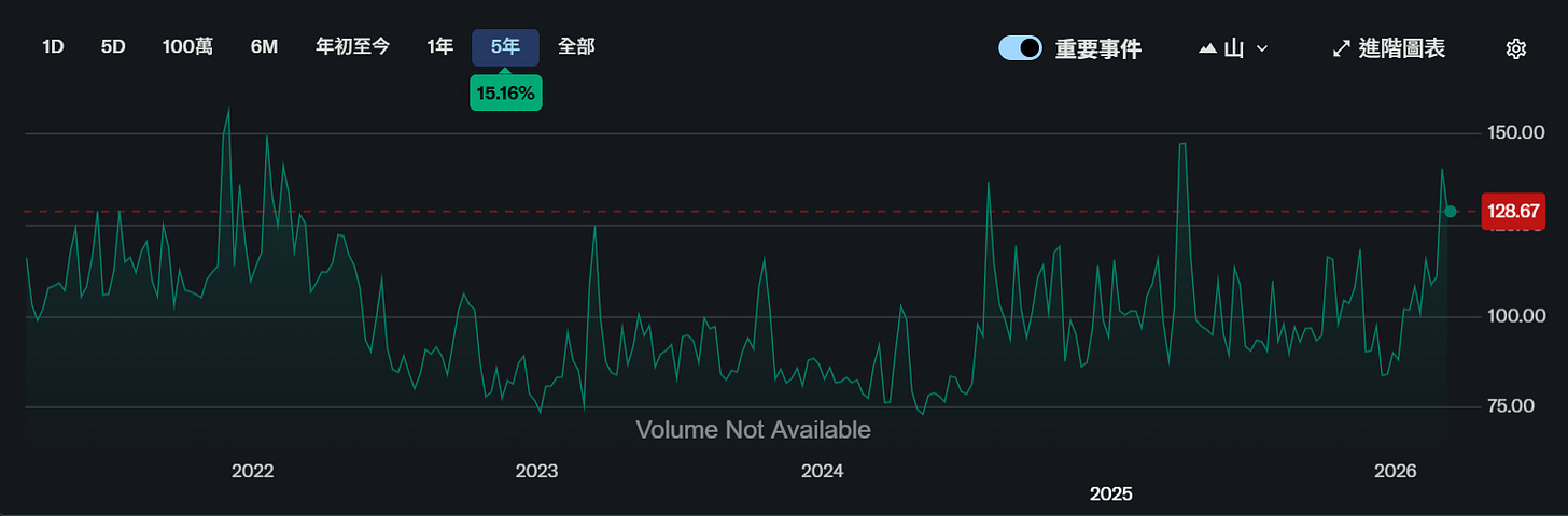 VVIX :如果 VIX 是「市場的恐懼」,那麼 VVIX 就是解讀為「市場對恐懼會增強的恐懼」,VVIX若在110-120,代表避險需求正在強化;若逼迫近150以上,市場已陷入「恐懼的波動」,資料來源 : yahoo finance