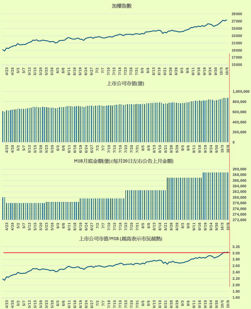 上市公司市值 / M1B金額 = 3.04