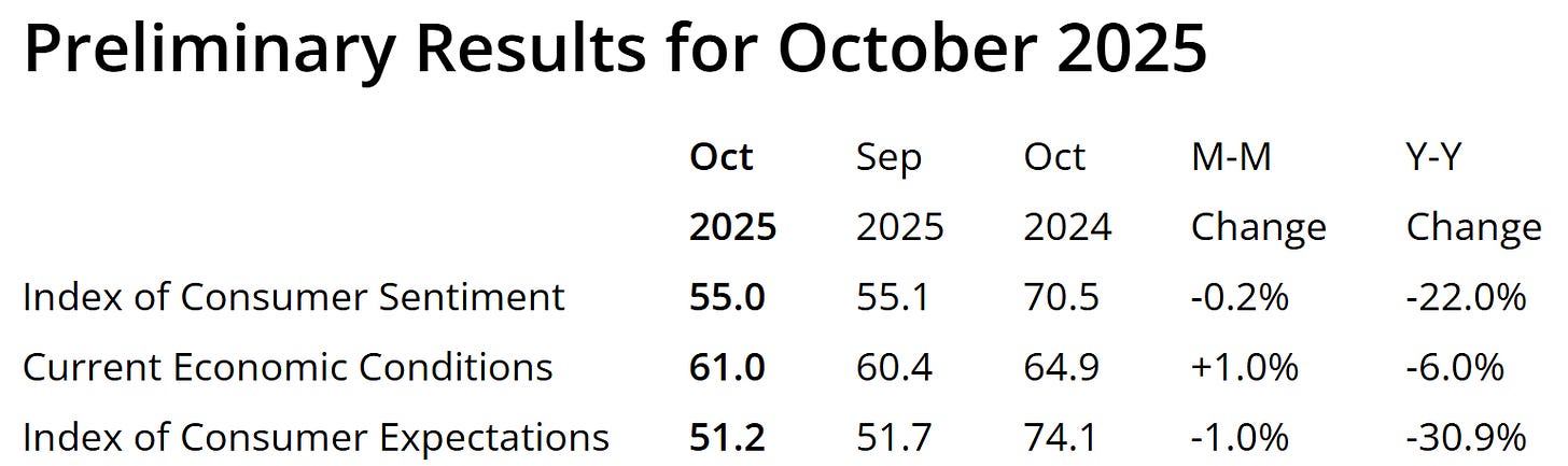 密西根大學消費者信心指數,資料來源:密西根大學