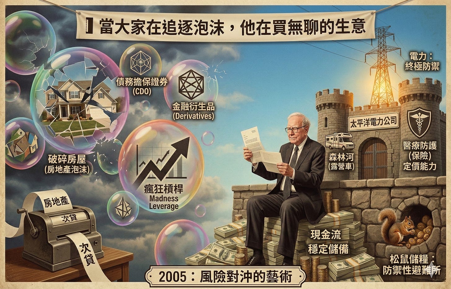 當別人在瘋狂槓桿時,他正在像松鼠儲糧一樣,把現金換成一個個堅固的防禦堡壘。