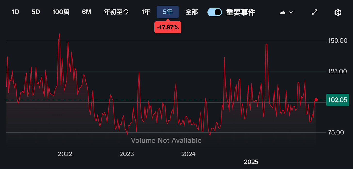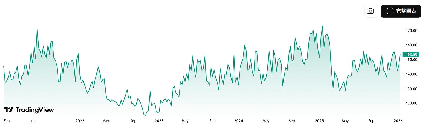 VVIX :如果 VIX 是「市場的恐懼」,那麼 VVIX 就是解讀為「市場對恐懼會增強的恐懼」,VVIX若在110-120,代表避險需求正在強化;若逼迫近150以上,市場已陷入「恐懼的波動」,資料來源 : yahoo finance