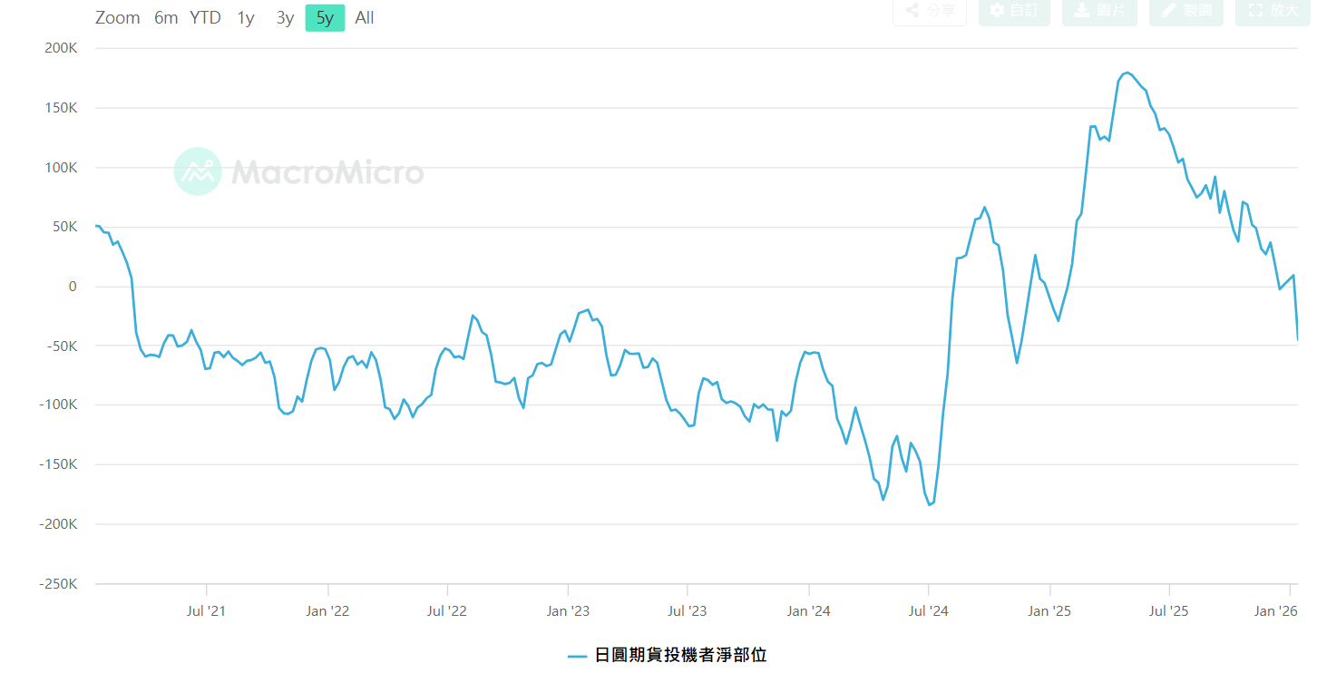 日圓期貨投機者淨部位,資料來源 : 財經M平方