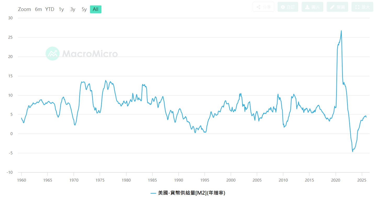 美國M2年增率,資料來源 : MacroMicro財經M平方