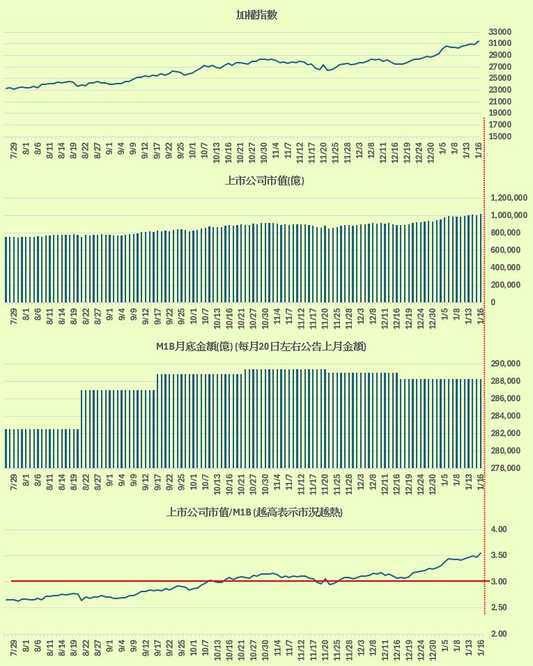 上市公司市值 / M1B金額 = 3.54