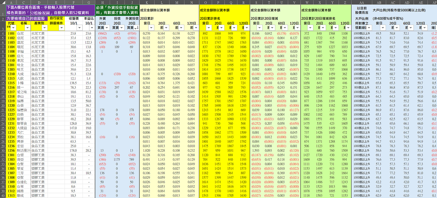 另外,若你有追蹤的特定股票,也可以把代號整理成一份清單,搭配匯出的資料做比對。這樣一來,就能更快速地看到這些股票在法人名單中的變化狀況。