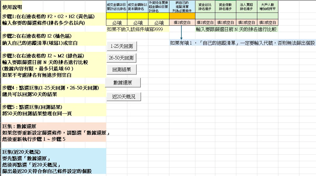 這套工具的靈魂在於:我拒絕提供任何預設的「明牌參數」。市場上常見的黑盒子演算法往往帶著神祕感,但我認為,只有當你親手設定篩選標準,你才能真正理解數據背後的市場慣性,這套檔案提供的資料全部來自真實市場的公開資訊,我只是透過運算幫你達成深度加工與視覺化。